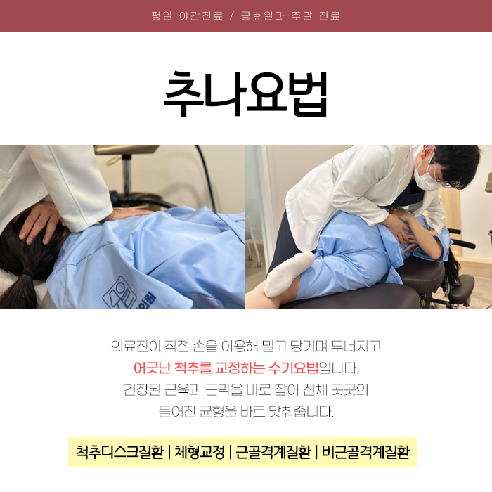 폭넓은 진료 과목을 다루어 환자분의 일상이 불편하지 않도록 최선을 다하고 있습니다. 불편한 증상이 나타나면 주저하지 마시고 즉시 내원하여 개선하시기 바랍니다. 감사합니다.