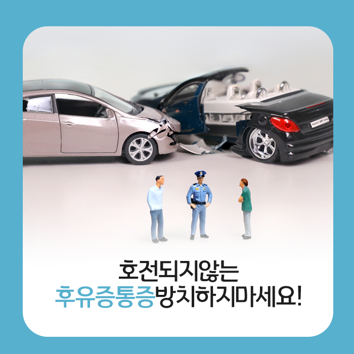 일상에서 자동차를 이용하는 시간이 많아지는 만큼 도로 위에서 예상치 못한 상황과 마주할 가능성도 높아집니다. 사고가 발생했을 때 보통 눈에 보이는 상처의 정도에 따라 상황의 심각성을 판단하게 됩니다. 충격이 크지 않고 외관상 파손이 경미하며 다친 곳이 없어 보인다면 치료가 필요 없다고 생각하며 빠르게 원래 생활로 돌아가시는 분들이 적지 않습니다.