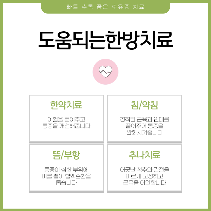 후유증은 몸이 보내는 작은 변화에서 시작될 수 있으며 원인 중 하나로 한의학에서는 어혈을 중요하게 봅니다. 어혈은 영상 검사로는 정확하게 파악하기 어려운 경우가 많습니다.