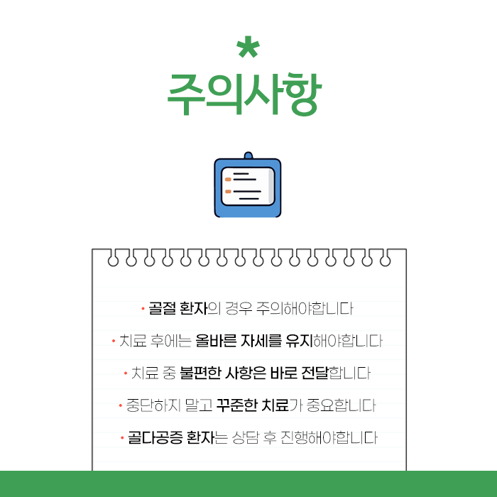 처음에는 버틸 수 있어라고 생각하며 방치하기 쉽지만 이 시기를 놓치면 통증은 더욱 심해지고 치료는 복잡해지며 회복 기간도 길어질 수 있습니다. 처음에는 불편함이 크지 않아 버틸 수 있다고 생각할 수 있지만 시간이 지나면 몸 전체 여러 부위에 영향을 주게 됩니다.
