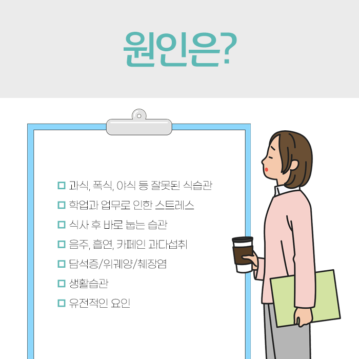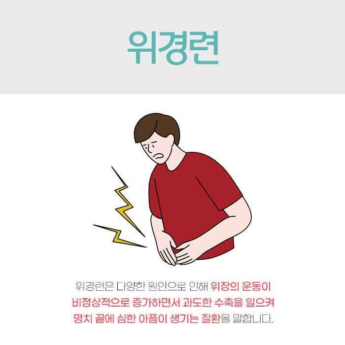 위경련은 위장의 근육이 과도하게 수축하면서 발생하는 통증을 말합니다. 위장은 음식물을 소화하고 흡수하는 데 역할을 하며 음식물을 으깨고 섞기 위해 활발하게 움직이는 장기입니다. 그러나 스트레스, 피로 누적, 잘못된 식습관 등으로 인해 위장의 운동 조절 기능이 원활하지 못하고 비정상적으로 과도하게 수축하게 되면 질환이 발생할 수 있습니다.