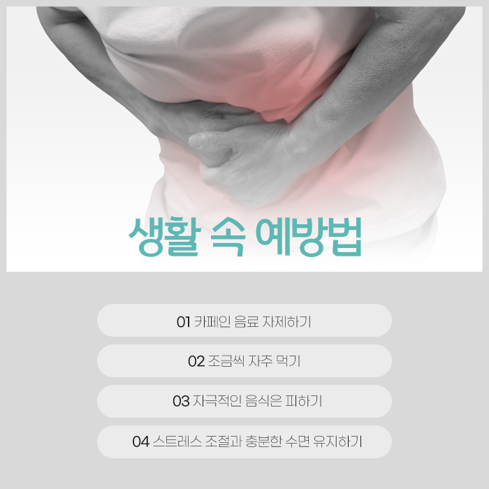 위는 스트레스에 가장 민감하게 반응하는 장기 중 하나입니다. 불규칙한 식사, 과식, 야식, 폭식은 위장에 부담을 줍니다. 피로 누적은 위장 기능을 저하시키고 위경련을 유발하는 원인이 됩니다. 건강한 생활 습관을 일관되게 지켜나가는 것이 위장의 경련성 통증을 예방하는 데 실질적인 도움을 줍니다.
