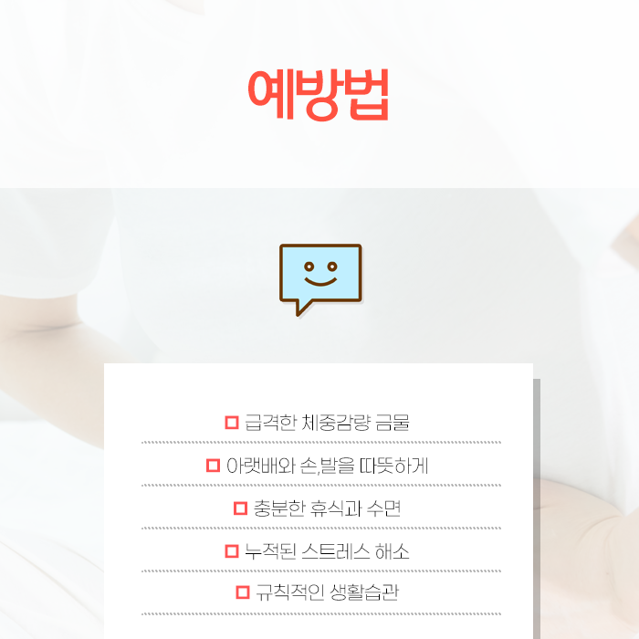 혈액 생성에 필요한 영양분을 충분히 섭취하고 규칙적인 식사를 통해 체력을 보강하며 예방하는 것이 중요합니다. 아랫배가 차가운 냉증이 전주효자동부정출혈 여성 질환에 영향을 미친다고 봅니다.