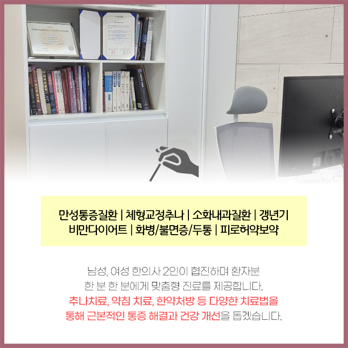 탕약, 스틱 등 여러 형태의 한약을 통해 환자가 필요로 하는 맞춤형 접근이 가능합니다. 효자동다이어트한의원의 가장 큰 장점은 개인 맞춤형 접근이 가능하다는 점입니다.