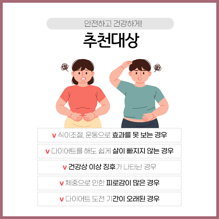 체중 감량과 함께 체질 개선 효과도 기대할 수 있습니다. 개인 체질에 맞춰 진행되며 후유증이 없고 감량 후 유지에도 도움이 되는 방법입니다. 살이 찌는 원인을 정확히 파악하고 이를 개선하는 것이 가장 중요합니다. 자신의 체중 증가 원인을 모른 채 무작정 극단적인 다이어트를 시도하면 오히려 부정적인 결과를 초래할 수 있습니다.